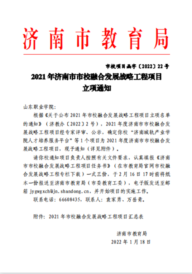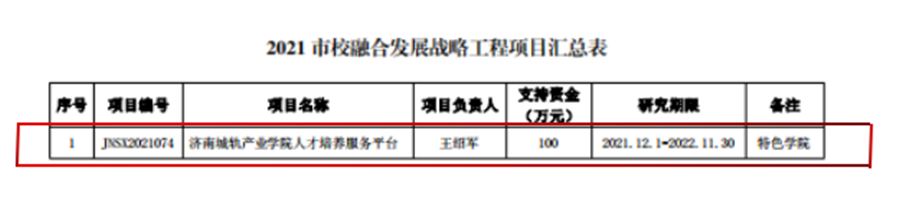 濟南市市校融合發展戰略工程項目是深入貫徹落實濟南市人民政府關于貫徹落實強省會戰略的重要舉措。學校將依托市校融合發展戰略工程項目,深化市校融合發展,助力科創濟南、智造濟南、文化濟南、生態濟南、康養濟南“五個濟南”建設,推動學校和區域經濟高質量發展,不斷提升服務新時代現代化強省能力和貢獻度。