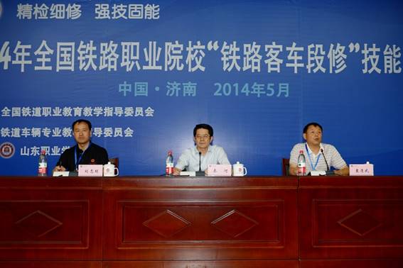 5月26日,由全國鐵道職業教育教學指導委員會主辦、鐵道車輛專業教學指導委員會承辦的2014年全國鐵路職業院校“鐵路客車段修”技能競賽在山東職業學院拉開帷幕。來自全國15所鐵路職業院校的136名參賽選手將在為期4天的比賽時間里分別參加《25G型客車綜合控制柜使用與維護》、《檢查及處理25G型客車綜合控制柜空調故障》、《15號車鉤鉤頭分解組裝及試驗》、《209T型轉向架落成檢查》、《塞拉門性能試驗與故障排除》、《104型制動機單車試驗》等6個實作科目和車輛鉗工(中級)、車輛電工(中級)等2個理論科目的比拼。