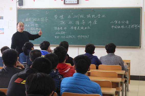 講座中,陳老師針對軌道交通運營類專業當前的就業形勢,通過與其他同類院校比較進行橫向分析,與本校往屆畢業生比較進行縱向分析,闡述了定向就業和非定向就業的優缺點。建議同學們針對自己的具體情況,選擇最有利的就業形式。陳老師指出,同學們應該從大學一年級就樹立正確的擇業觀念,合理進行職業生涯規劃。期間,陳老師還從正式工與臨時工身份、薪資待遇、城市軌道交通發展趨勢、鐵路局招聘城軌專業學生的數據等方面分析說明。他指出,選擇定向就業,參與“訂單班”學習,既能明晰自己的發展方向,又能以企業正式員工的身份安心工作生活,對企業和學生是“雙贏格局”。最后,系團總支書記張錦要求同學們要認真分析自身特點,做好職業生涯規劃,為軌道交通事業的發展貢獻力量。