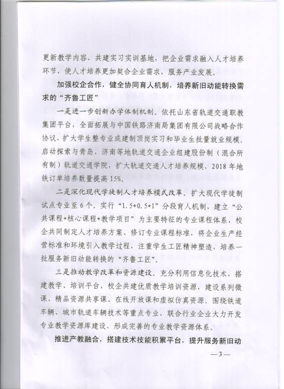 下一步,學院一是要堅持固本強優,發揮軌道交通辦學特色,對接高端裝備、新一代信息技術等產業,重點優化升級鐵道機車車輛、鐵路線路運營、城市軌道交通、軌道交通裝備制造等4個專業群,申報城市軌道交通供電技術等新專業,加大高速動車組檢修技術等新上專業建設力度,打造符合新舊動能轉換需求、服務軌道交通發展的一流專業群。二是要加強校企合作,擴大學生整專業成建制頂崗實習和畢業生批量就業規模,啟動組建股份制(混合所有制)軌道交通學院,深化現代學徒制人才培養模式改革,注重學生工匠精神塑造,培養一批服務新舊動能轉換的“齊魯工匠”。三是要推進產教融合,搭建高水平科研和技術服務平臺。建設3個科研專家工作室、3個技能大師工作室、5個工程技術研發中心(協同創新中心),提高科研和協同創新能力。豐富學院培訓基地功能,提升服務新舊動能轉換的社會服務能力。推動城軌地鐵實訓真車技術、軟件技術、智能制造、生物制藥等技術領域的成果轉化,服務產業轉型升級。配合高鐵“走出去”戰略,啟動校企合作共建“海外學堂”項目。擴大培訓鐵路企業海外員工、外派員工培養規模,提升學生國際視野,推動學生海外就業。