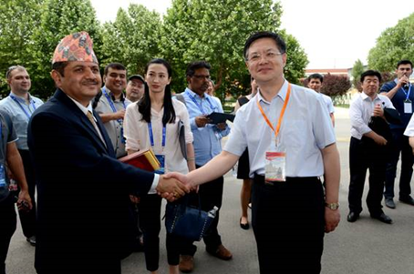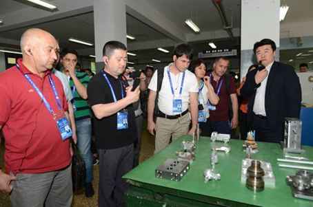今年6月9日至10日,上海合作組織成員國元首理事會第十八次會議將在山東青島舉行。作為我國重要的主場外交活動之一,上合峰會備受矚目。5月29日,中國工會“一帶一路”人文交流——上合組織國家職工技能交流營代表團一行27人在中國職工對外交流中心國際聯絡處處長何際霞、副處長毛麗娜,山東省總工會副主席李臻,山東職工對外交流中心主任白明的陪同下,到我院參觀訪問。山東省委教育工委委員,省教育廳副廳長、黨組成員白皓,學院黨委書記王榮昌、院長秦河等陪同參觀。