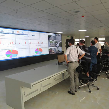 調研團隊首先來到園區調度運營中心,在中心大屏幕上,能夠很清晰看到園區業務開展的情況,并能動態提供貨運在多種運輸方式上的定位和相關信息。據園區程總介紹,園區整體分為三期建設,目前已經完成一期的全部建設并開始運營。園區的趙科長對調研團隊表示,由于鐵路物流屬于融合性的新事物,所以現有的團隊成員全部都是由原有鐵路系統調過來,在園區經營上屬于摸著石頭過河,急需專業的人才。而這也恰恰是鐵路物流管理專業建設與產業需求相融合的點。