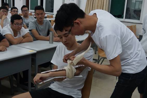 在疏導心理創傷活動中,老師們針對同學的心理健康情況展開調查,通過與部分學生干部的交流關注學生心理,要求當發現身邊同學疑似心理健康問題表征的時候,一定要關心到位,及時告知老師,做到第一時間采取危機干預、解決問題。在心理知識救護普及活動中,老師通過PPT為大家講解普及救護的理論知識,向大家介紹了在救護時應該注意的問題。在大學生救護演練活動中,通過實際演練,進一步保證急救技能知識的學習和鞏固。