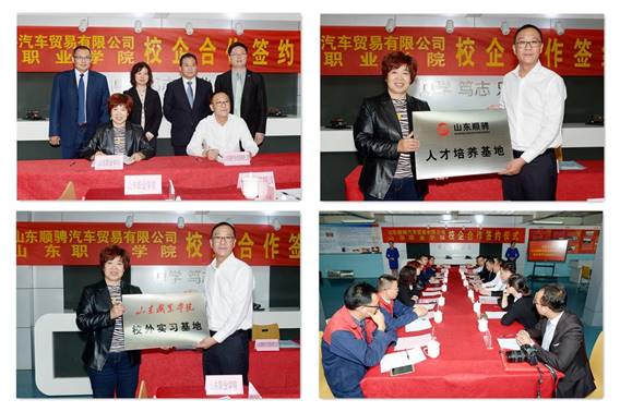 此次校企合作協議的簽訂和兩個基地的揭牌,掀開了學院與山東順騁汽車貿易有限公司校企合作的新篇章。學院將發揮人才培養基地先進的教學模式和設備、人才優勢,培養具有國際視野、適應行業發展的高端技術技能人才,增強技術培訓和職業技能鑒定的服務能力,為校企合作提供更多更好的服務。