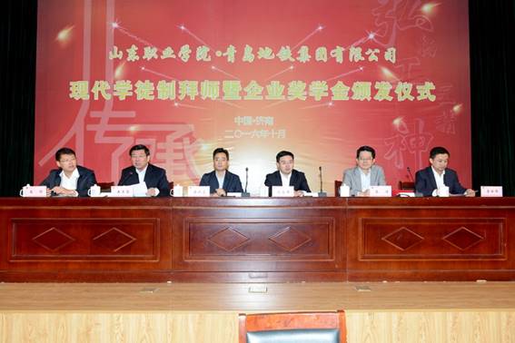 此次舉行拜師暨企業獎學金頒發儀式,掀開了山東職業學院鐵道工程專業現代學徒制項目建設的新篇章,開啟了校企共建師資、聯合培養、協同育人的新征程。學院也將以本次拜師儀式為契機,加強與青島地鐵集團有限公司的深度合作,共同探索逐步擴大現代學徒制專業領域,完善體現現代學徒制特點的管理制度體系,建設校企互聘共用的師資隊伍,創新人才培養模式改革,健全多方參與的考核評價機制,著力構建校企分工合作、協同育人、共同發展的長效機制,努力打造山東省現代學徒制試點工作的樣板和典范,為建設具有山東特色的現代學徒制度,推動現代職教體系發展,更好的為軌道交通行業和山東經濟社會發展做出更大貢獻。