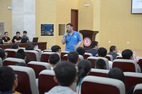 為做好大學生創新創業工作,招生就業指導中心副主任魏鵬在比賽開始前從歷史沿革、時代特點等兩個方面為現場百余名師生介紹了創新創業的意義,并從依托專業、依托科研平臺、依托老師、依托大學生職業生涯規劃等方面為大學生創新創業提出了具體建議。