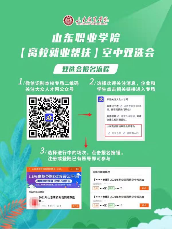 職匯云端 才聚線上山東職業學院空中雙選會邀請函2021年7月專場