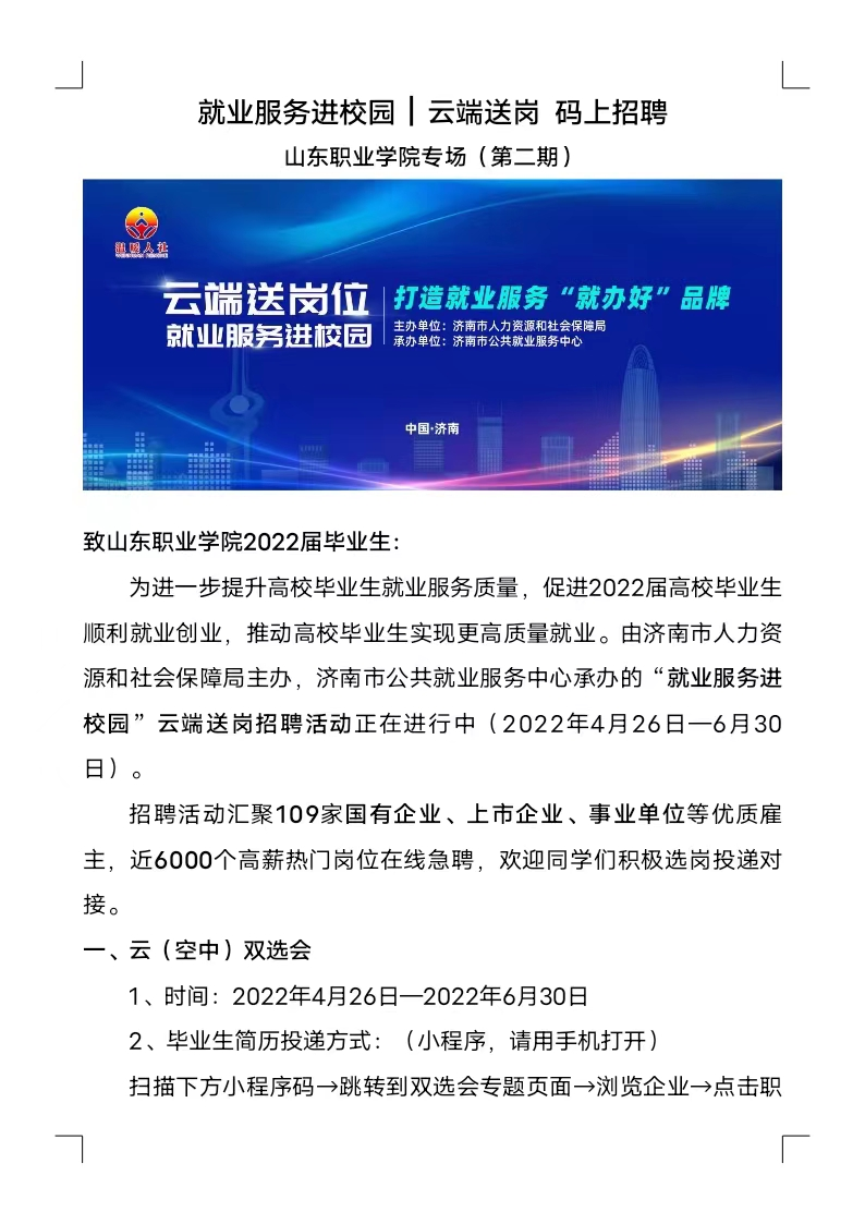就業服務進校園|云端送崗 碼上招聘山東職業學院專場(第二期)