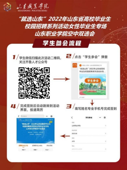 為深入貫徹落實黨中央、國務院決策部署和省委、省政府工作要求,根據山東省人力資源和社會保障廳對“就選山東”2022 年山東省高校畢業生校園招聘系列活動的安排,同時為做好學校疫情防控常態化條件下校園招聘工作,學校聯合齊魯人才就業平臺舉辦女性畢業生專場山東職業學院空中雙選會系列活動,為各企事業單位的招聘和學校應、往屆畢業生穩定就業拓路護航,誠摯邀請您參會。