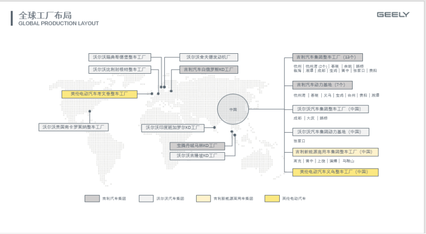 浙江吉利控股集團始建于1986年,1997年進入汽車行業,一直專注實業,專注技術創新和人才培養,現已發展成為一家集汽車整車、動力總成和關鍵零部件設計、研發、生產、銷售和服務于一體,并涵蓋出行服務、數字科技、金融服務、教育等業務的全球創新型科技企業集團。現資產總值超過3900億元,員工總數超過12萬人,連續十一年進入《財富》世界500強(2021年排名239位)。吉利控股集團總部設在杭州,在中國上海、杭州、寧波,瑞典哥德堡、英國考文垂、西班牙巴塞羅那、美國加州、德國法蘭克福、馬來西亞吉隆坡等地建有造型設計和工程研發中心,在中國、美國、英國、瑞典、比利時、白羅斯、馬來西亞建有世界一流的現代化的整車和動力總成制造工廠,旗下擁有吉利、領克、幾何、沃爾沃、極星、寶騰、路特斯、英倫汽車、遠程新能源商用車、曹操出行、錢江摩托等品牌,是沃爾沃集團第一大持股股東和戴姆勒股份公司第一大股東。
