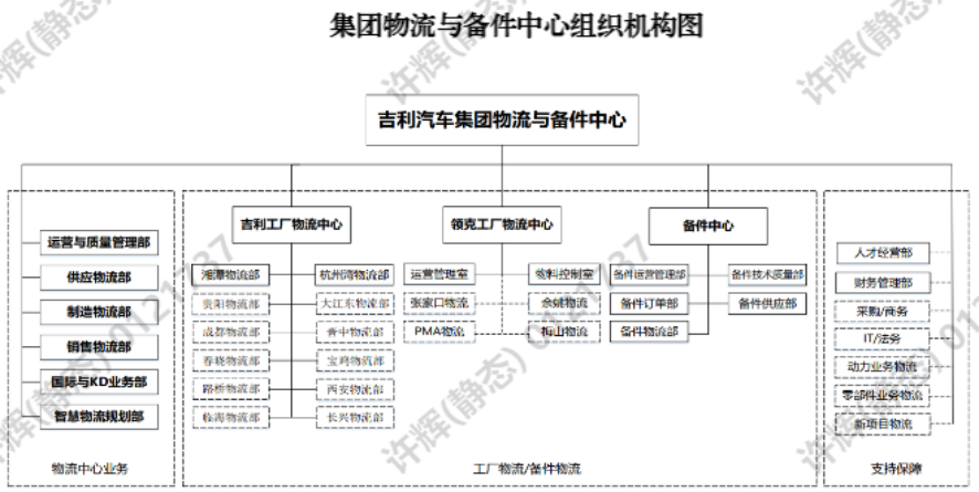 吉利汽車集團物流與備件中心成立于2019年1月,員工總數超過 6000 人,服務集團所有國內外基地的物流業務。主要負責集團物流體系的全面建設,是集團物流運營管理的歸口單位。物流與備件中心主營有承擔集團國內、國外銷售物流的運營管理,智慧物流規劃、集團物流包裝器具的設計制造與交付管理,零部件物流運輸項目管理,制造基地倉儲物流、三方物流、廠內物流、KD包裝的運營與管理,物流供應商的培訓與管理,集團物流項目持續改善降本工作。