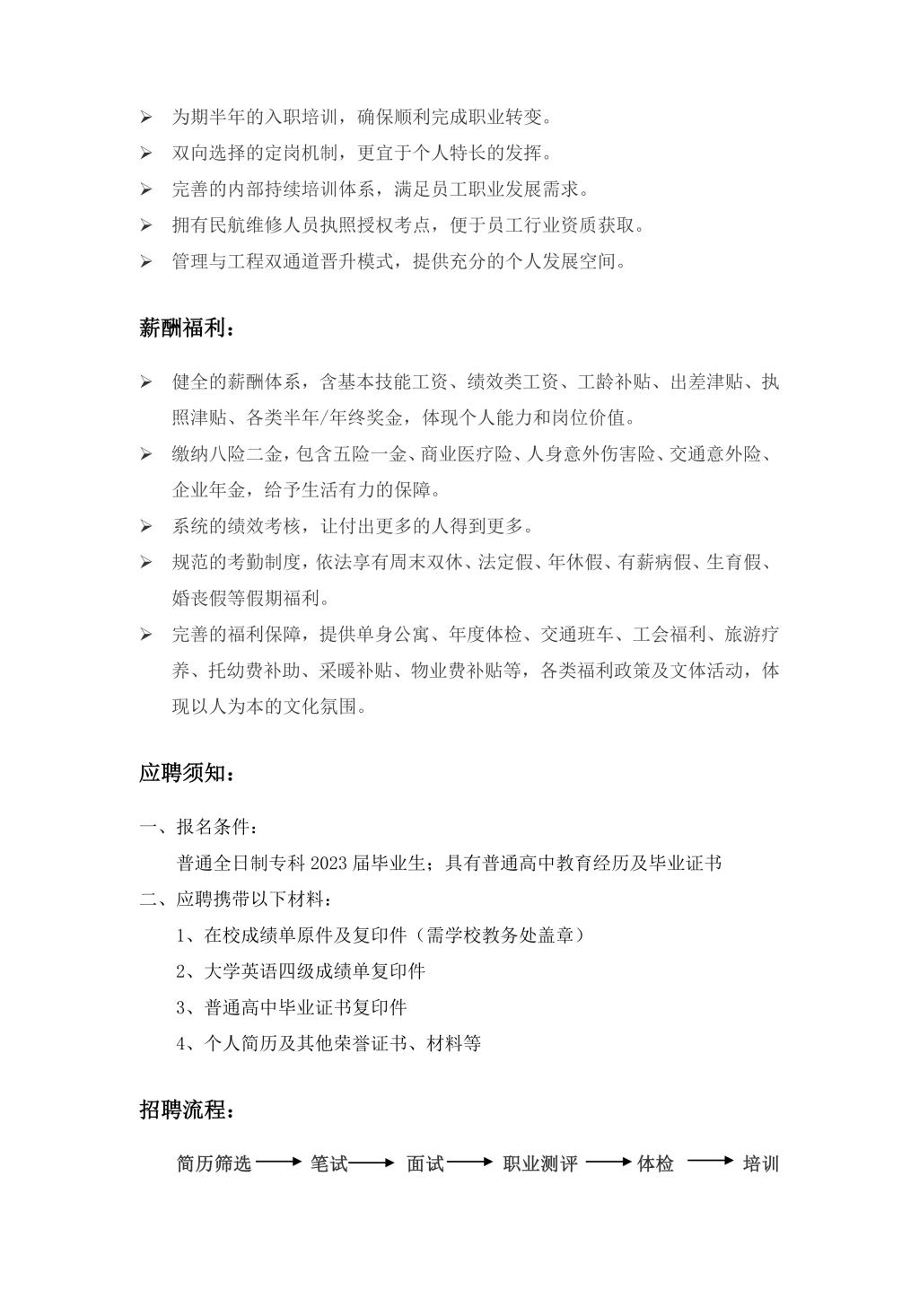山東太古飛機工程有限公司招聘簡章2023