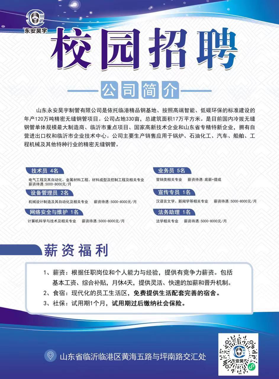 山東永安昊宇制管有限公司招...