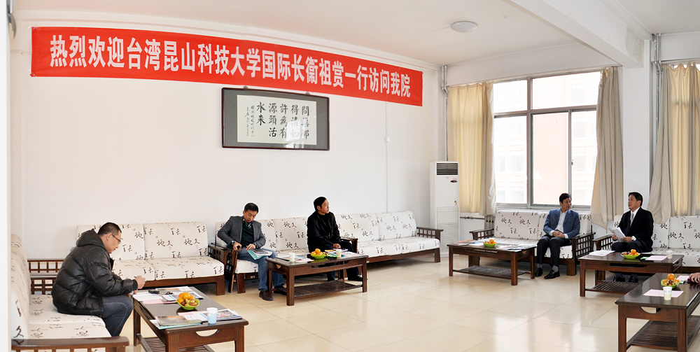 11月12日上午,臺灣昆山科技大學國際長衛祖賞、推廣教育中心組長張培華一行二人來我院訪問。山東職業學院黨委書記劉邦治,院長鄧洪基,黨委副書記、常務副院長馬文卿,副院長祝瑞花出席接待。 會談中,黨委書記劉邦治與衛祖賞國際長分別介紹了雙方院校的發展概況,并表達了兩校開展實質性合作的愿望。隨后,雙方就師資培訓和交換生等方面的合作具體事宜進行了深入商討,并達成了初步共識。衛祖賞表示,希望今后兩校進一步加強聯系和溝通,在更多層面和領域開展互利雙贏的交流合作。 本次臺灣昆山科技大學領導的來訪,是對上半年山東職業學院黨委書記劉邦治隨教育廳考察團赴臺進行教育考察時與昆山科技大學校長蘇炎坤簽署《合作協議書》的進一步跟進,不僅促進了兩校之間更深層次的了解,更對日后的合作打下了堅實的基礎。 山東職業學院組織人事處處長崔君清,教務科研處處長郭鵬,國際交流中心主任王輝陪同接待了來賓。