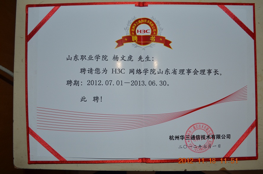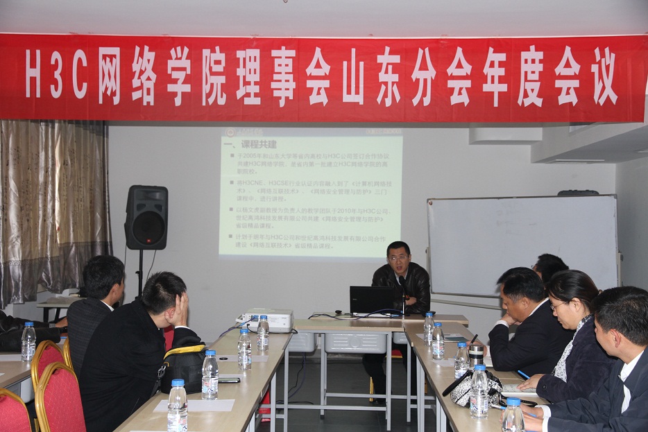 11月8日,杭州華三通信技術有限公司H3C網絡學院理事會山東省分會會議在濟南召開,來自山東大學、山東科技大學、山東職業學院、山東商業職業技術學院、東營職業技術學院、濱州職業學院等省內47家知名本專科院校領導教師與部分企業代表參加會議。信息工程系黨總支書記楊文虎在會上被推選為H3C網絡學院理事會山東省分會理事長,我院被評為H3C網絡學院理事會山東省分會理事長單位。