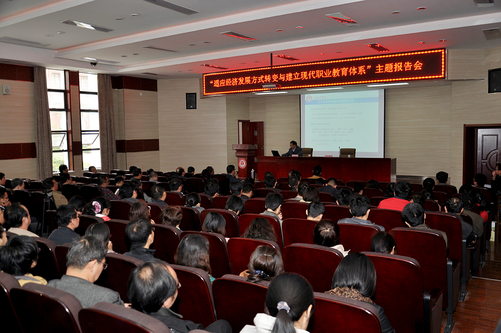 11月2日,山東職業學院舉行專題報告會,學院黨委書記劉邦治在會上作了題為《適應經濟發展方式轉變與建立現代職業教育體系》專題報告。院長鄧洪基,黨委副書記、常務副院長馬文卿,副院長徐冬、馬慶渭,紀委書記祝介安,學院各部門、各系部負責人及專任教師到會聽取報告。報告會由馬文卿主持。 劉邦治在報告中就關于高等職業教育的屬性定位、高等職業教育的歷史貢獻等方面作了講解,就高等職業教育存在的突出矛盾和高等職業教育面臨的形勢作了精要分析。 在深入分析了高等職業教育所面臨的嚴峻形勢后,劉邦治進一步指出,建立現代職業教育體系是從國家層面推動職業教育大發展、大繁榮的一項重要戰略決策,為高等職業教育的發展賦予了新的使命、新的任務、新的內涵。我們對于“怎么看高職”應該有新視野和新高度,對于“怎么辦高職”應該有新認識、新思考、新作為。 劉邦治表示,學院在建設國家骨干高職發展的道路上,既要高瞻遠矚、仰望星空,又要立足現實、腳踏實地。希望廣大教師和干部能以時不待我的歷史責任感和使命感扎實工作,積極探索,為山職幾代人的美好愿景不懈追求、努力奮斗! 馬文卿在主持講話中指出,劉書記的主題報告思路清晰,方向明確。實驗示范性國家骨干高職院校是我們當前的奮斗目標,這就需要大家要培養并具備創新意識、發展意識、競爭意識,在高等職業教育的發展大潮中,在學院國家骨干高職院校的建設過程中,永葆活力,爭創佳績。