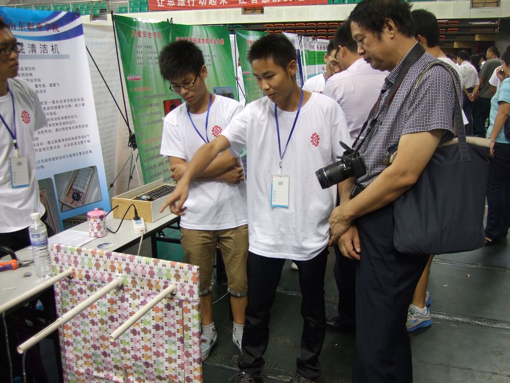 8月27-29日,為期三天的2012年“泰汽新能源杯”第九屆山東省大學生機電產品創新設計競賽總決賽在青島大學落下帷幕,機械工程系和機電裝備系代表我院參賽,入選的六項作品中榮獲一等獎二項,二等獎二項,三等獎二項,孫兆冰、趙振二位老師榮獲“優秀指導教師”稱號。獲獎層次和數量在省內同類院校中名列前茅。 由機電裝備系的趙振老師指導的李孟亮等同學設計的“自動水洗環保無塵黑板”,由機械工程系的孫兆冰、高洪芬老師指導的翟鵬飛等同學設計的“自動鞋底清潔機”獲大賽一等獎,同時“自動水洗環保無塵黑板”作品還榮獲“機工教育”獎杯。由機械工程系孫兆冰、呂震宇老師指導的高震等同學設計的“盲人水杯”和高平等同學設計的“定時循環式自動澆花設備”獲本次設計競賽二等獎。 本次競賽由山東省教育廳主辦,山東高校機械工程教學協作組、青島大學承辦。今年大賽的主題是“幸福生活——今天和明天”,參賽學校達到69所,共有2921件作品、15000余名師生參加了競賽,作品內容涉及機械、電子、車輛、化工、紡織、輕工、控制等行業。經過專家組的嚴格評審,最終推選出519件作品參加今年的決賽。 機械工程系和機電裝備系歷來重視學生創新能力的培養,在指導教師的帶領下,每年都有許多學生組隊參加創新設計競賽。此次比賽取得的優異成績,再次證明我校學生在機電產品創新設計方面具有較強的創新能力、扎實的專業知識和良好的團隊協作精神。