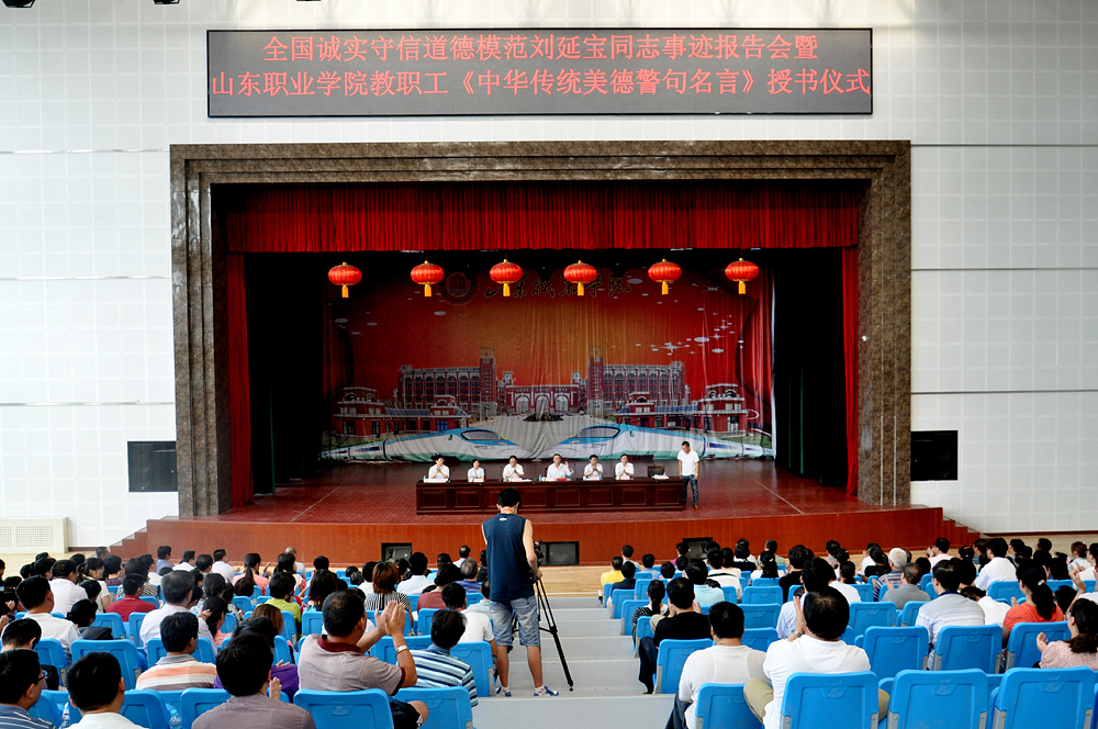 6月12日,山東職業學院的大禮堂內傳來陣陣掌聲,全國誠實守信道德模范劉延寶同志事跡報告會暨山東職業學院教職工《中華傳統美德警句名言》授書儀式在這里隆重舉行。全國誠實守信道德模范劉延寶出席大會,受聘“山東職業學院德育導師”,作先進事跡報告。濟南市歷城區委副書記李光忠,歷城區委常委、宣傳部長路建玲,學院黨委書記劉邦治,院長鄧洪基,黨委副書記、常務副院長馬文卿,第四代守墓人、劉延寶之子劉增榮出席大會,為全院教職工授《中華傳統美德警語名言》書。學院領導班子成員、全院教職工和優秀學生代表2000余人參加了大會。大會由鄧洪基主持。 劉增榮在劉延寶先進事跡報告中,用淳樸的語言為師生們講述了他們一家祖孫四代為了“俺能行”的諾言,不管世事如何變遷,把守墓接力棒代代相傳,64載誠心守護烈士墓園,用實際行動譜寫忠義守信大愛之歌的感人事跡。 濟南市歷城區委副書記李光忠在會上講話。他指出,劉延寶同志祖孫四代恪守諾言,一諾無悔,用真誠詮釋信念,用行動踐行諾言。他的事跡令人感動,他的精神值得學習。希望廣大青年學生能夠通過學習劉延寶同志先進事跡有所感悟,有所收獲,在自己的人生道路上形成正確的人生觀、價值觀,以誠實守信的心態,以對社會的愛之奉獻看待社會,奉獻社會,成人成才,取得更大發展。 劉邦治為劉延寶頒發“山東職業學院德育導師”聘書,并作重要講話。他指出,劉延寶同志的先進事跡感人至深,給人洗禮。他的身上閃耀著誠實守信的中華傳統美德,體現了深厚的愛國主義精神,彰顯了人性和道德的光輝。這種優秀的道德品質和高尚的道德情操,是全國人民和全校師生學習的楷模和榜樣。 劉邦治指出,今年以來,學院不斷強化德育教育工作,充分發揮先進人物的引領示范作用,先后聘請了林秀貞、許振超、劉延寶等有影響力的模范人物為學院德育導師并來校做報告,這是學院認真貫徹黨中央關于進一步加強大學生思想政治教育的重要舉措,是學院全面加強師德建設的重要內容,也是學院新形勢下創新“德育為本”教育新理念的重要實踐。 劉邦治強調,教育工作者要始終堅持育人為本,德育為先,把立德樹人作為教育的根本任務。要更新傳統的教育理念,堅持把促進學生健康成長作為學校一切工作的出發點和落腳點,著力增強學生服務國家服務人民的社會責任感、勇于探索的創新精神、善于解決問題的實踐能力。要把促進人的全面發展和適應社會需要作為衡量人才培養水平的根本標準,樹立多樣化人才觀念和人人成才觀念,樹立終身學習觀念,造就信念執著、品德優良、知識豐富、本領過硬的高素質人才。要把專業教育提升為通識教育,把通識教育提升為能力教育,把能力教育提升為素質教育,把素質教育提升為品格教育,引導青年學生崇尚真理、追求卓越,做一個有益于國家、民族、社會,有益于他人的人。 劉邦治指出,舉行《中華傳統美德警句名言》授書儀式,是學院認真貫徹黨的十七屆六中全會精神、大力加強學院文化建設的重要內容,是學院教職員工踐行社會主義核心價值體系、加強師德建設的一項重要舉措,也是學院即將開展的“中華美德”教育活動的一次校內動員。希望廣大師生員工以授書儀式為契機,加強中華傳統美德的學習,深刻領悟其中的思想精髓,時刻以中華傳統美德自警自勵自重自省。教職工以中華傳統美德為激勵,樹立崇高的職業理想和堅定的職業信念,自覺堅持社會主義核心價值體系,帶頭實踐社會主義榮辱觀,不斷加強師德修養,樹立高尚的道德情操和精神追求,愛崗敬業、關愛學生,刻苦鉆研、嚴謹篤學,靜下心來教書,潛下心來育人,努力做受學生愛戴、讓人民滿意的教師;同學們要把中華傳統美德的學習作為人生的必修課,把正確的道德認知、自覺的道德養成、積極的道德實踐緊密結合起來,提高品德修養,弘揚傳統美德,倡導新風正氣,用高尚的道德行為推動全社會文明程度的提高。要爭當誠實守信的模范,爭當奉獻社會的模范,爭當促進社會和諧的模范;要通過自己的實際行動,讓愛國主義、集體主義、社會主義思想更加深入人心,讓社會主義榮辱觀更好地引領社會風尚。 鄧洪基在主持講話中指出,學院黨委全面加強師德建設和德育工作,決定在全院師生員工中開展中華美德教育,目的就是要從提升民族意識,增強民族自信心、自豪感和責任感入手,從確立遠大志向做起,從規范行為習慣做起,從提高基本素質做起,弘揚和培育以愛國主義為核心的偉大民族精神。 鄧洪基指出,今后一個時期,學院將充分利用全省、全國的道德模范教育資源擔任學院的德育導師,豐富活動形式、拓展活動載體,開展學習《中華傳統美德警句名言》活動,將中華傳統美德作為社會主義核心價值觀教育的一個重要組成部分,不斷提升大學生的思想道德修養,使得大學生在獲取實踐技能的同時,鍛煉高尚的道德品質,為大學生的可持續發展提供素質保障。
