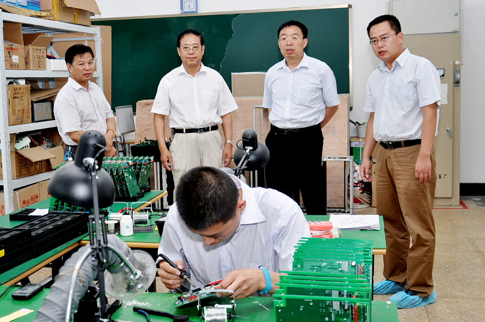 2012年6月16日下午教育部職業教育與成人教育司司長葛道凱及職成司教產合作處處長林宇一行,在山東省教育廳領導的陪同下到山東職業學院視察工作。學院黨委書記劉邦治,院長鄧洪基,學院黨委副書記、常務副院長馬文卿以及學院辦公室、產學研結合處、教務處等部門領導陪同參觀視察了學院新近落成的軌道交通實訓基地、電氣工程系生產實訓車間、機械工程系制造技術中心。 葛道凱司長和林宇處長一行在學院領導的陪同下,登上“山職號”城軌車輛教學實訓車,并認真地詢問了專業教學組織與實施情況。劉邦治就軌道交通實訓基地的建設、“山職號”教學實訓車的教學應用等內容做了詳細描述,并介紹了學院校企合作及軌道交通專業數量、招生規模及就業情況。軌道交通系主任吳書峰向教育部領導匯報了學院師生參與“山職號”教學實訓車設計與制造的過程。 在電氣工程系生產實訓車間,葛道凱司長詳細觀看SMT生產實訓和波峰焊電子裝配生產實訓過程。電氣工程系主任于洪永向葛司長介紹了校企共建實訓基地,共同開發生產性實訓項目和為企業加工100余種產品的情況。葛道凱司長向正在生產線上實習工作的電子工藝二年級學生詢問了日常學習與實踐內容。林宇處長對實訓生產組織非常關心,教務處處長郭鵬詳細向林宇介紹了生產性實訓的教學組織,林宇處長說:“我在很多學校見過SMT生產線,但是用于生產的還是第一次見到。” 鄧洪基院長在學院先進制造技術中心向葛道凱司長介紹了學院專業的建設與發展規劃;產學研結合處長、山東省技能大賽組委會秘書長陳紅康介紹了山東省技能大賽組織的整體情況,并詳細介紹了2012年山東職業學院承辦的三個制造類競賽項目的組織過程及大賽對教學的引領作用;機械工程系主任李新華就先進制造技術中心設備配置和正在進行的技能鑒定工作向領導作了匯報。葛道凱司長對正在進行技能鑒定的學生和老師進行了細致詢問,了解了實踐教學指導教師師資來源等具體情況。 視察中,教育部領導充分肯定了學院的辦學特色,具體了解了學院職業教育改革的具體措施和成果,對學院的進一步發展提出了殷切的希望。學院將在既有基礎上進一步做好人才培養模式改革,建設國家一流的示范高職院校。