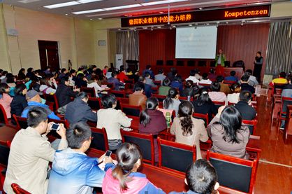 2013年10月26日,德國蘭茨胡特職業學校校長艾格納博士、山東巴伐利亞職教師資培訓中心崔慶華一行來我院訪問。26號上午,艾格納校長在山東職業學院培訓中心為師生們進行了《德國職業教育中的能力培養》專題講座。講座前后,山東職業學院黨委書記劉邦治,黨委副書記、常務副院長馬文卿,副院長徐冬等領導與艾格納校長進行了座談。