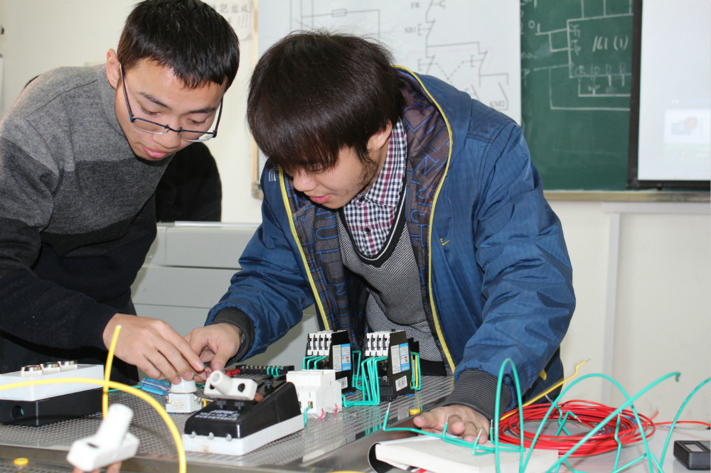 2013年11月30日,軌道交通學院組織2012級考生進行了第一批電工證實際操作考試,主要考查同學們連接雙重互鎖電動機正反轉控制電路和觸電急救人工操作的實際能力。