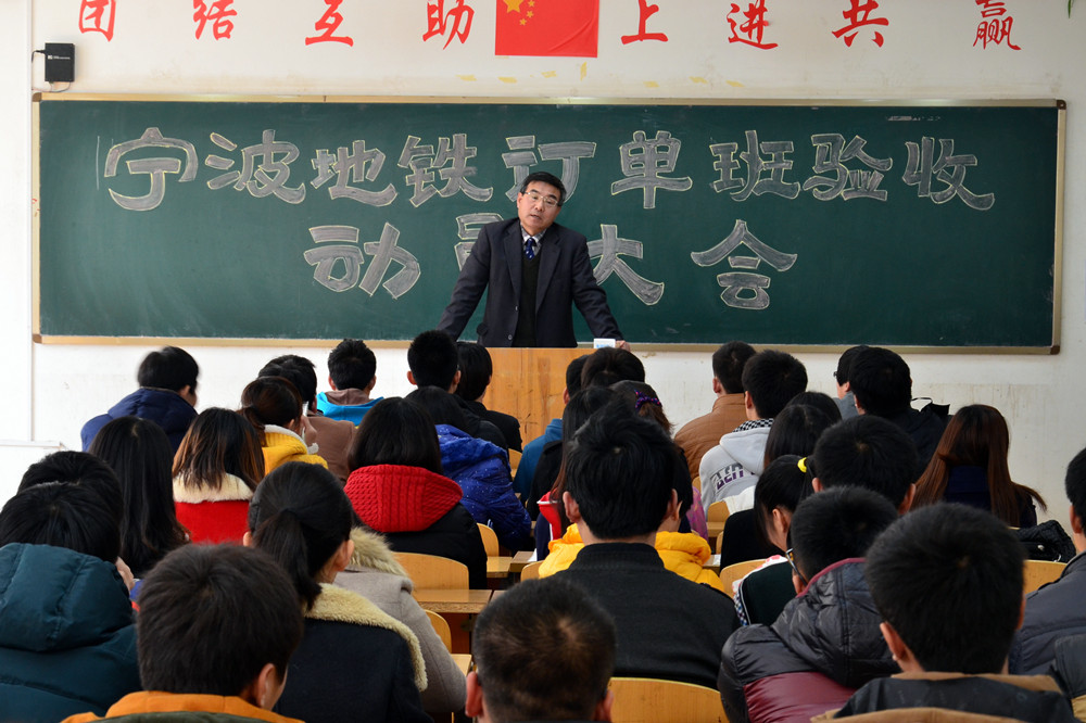 2013年12月2日,軌道交通學院對2011級寧波地鐵訂單班學生召開動員大會,軌道交通學院常務副院長吳書鋒、就業辦主任胡濤出席了此次動員大會。