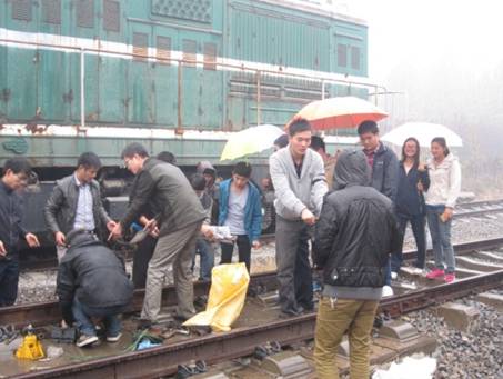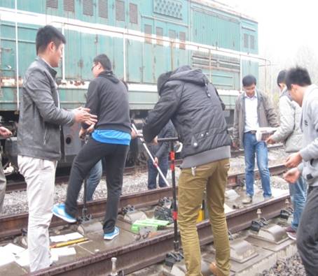 為使鐵道工程技術專業學生學習最新的高速鐵路知識,開闊視野,2013年11月9日,土木工程系邀請濟南西工務段高速鐵路養護維修車間支洋主任對11級鐵工、高鐵專業學生做了高鐵施工學術講座,并在鐵路養護維修實訓場進行了現場教學。