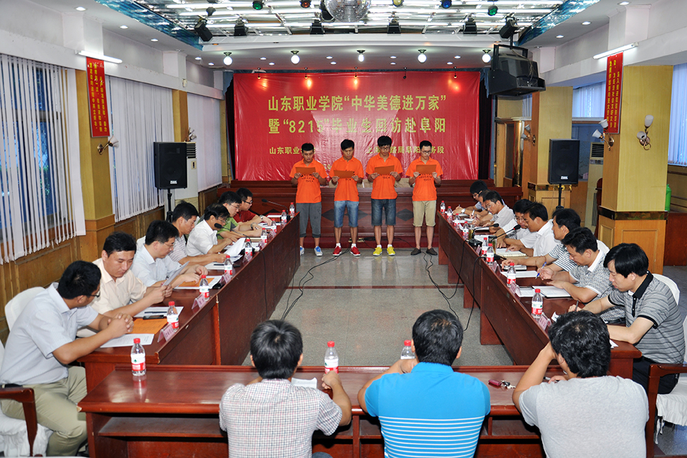 “寶劍鋒從磨礪出,梅花香自苦寒來。眼前多少難甘事,自古男兒當自強。”8月2日,山東職業學院2013年“中華美德進萬家”暨“8215”畢業生回訪活動土木工程系小分隊在學院黨委書記劉邦治的帶領下走進上海鐵路局阜陽工務段,與企業領導和優秀畢業生代表座談,共話合作治教、美德育人。學院黨委書記劉邦治,黨委宣傳統戰部部長王偉,土木工程系黨總支書記徐曉東、學工辦主任劉林、就業辦主任魏鵬、專業課教師柴振波,阜陽工務段段長吳文廣、黨委書記劉立順、副段長楊東曉等企業領導和相關部門負責人以及優秀畢業生代表參加活動并出席座談。劉邦治為活動致辭,代表學院向阜陽工務段贈送《中華傳統美德警句名言》書籍,宣布阜陽工務段為“山東職業學院美德教育社會實踐基地”。吳文廣主持儀式,并介紹了工務段基本情況和該段階梯式特色人才培養方法。劉立順為活動致辭,希望能以活動為契機加強企校間的聯系與合作,共同為祖國的鐵路事業發展培養優秀人才。“中華美德進萬家”宣傳小分隊在活動儀式上誦讀中華美德經典名言。