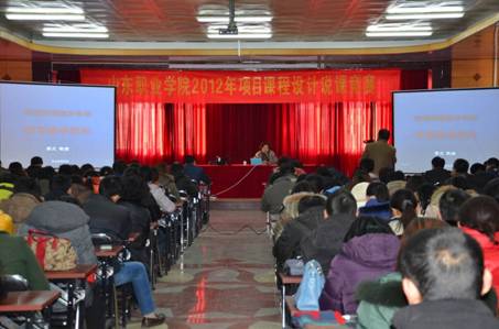 2013年1月26日山東職業學院項目課程設計說課競賽。參加競賽評判工作的學院領導有黨委副書記、常務副院長馬文卿,副院長祝瑞花;特邀前來指導的校外專家有天津中德職業技術學院航天與汽車學院院長國家級課程建設專家李文教授、濟南工程職業技術學院資深教務處長林英教授;以及各系部推薦的評委,共計26名校內外專家。本次競賽由來自9個系部的22位老師參加,他們都是經過系部初選,在學院71門項目化改革課程中脫穎而出的優秀代表,我系張風琴、靳曉燕、王靜參加。