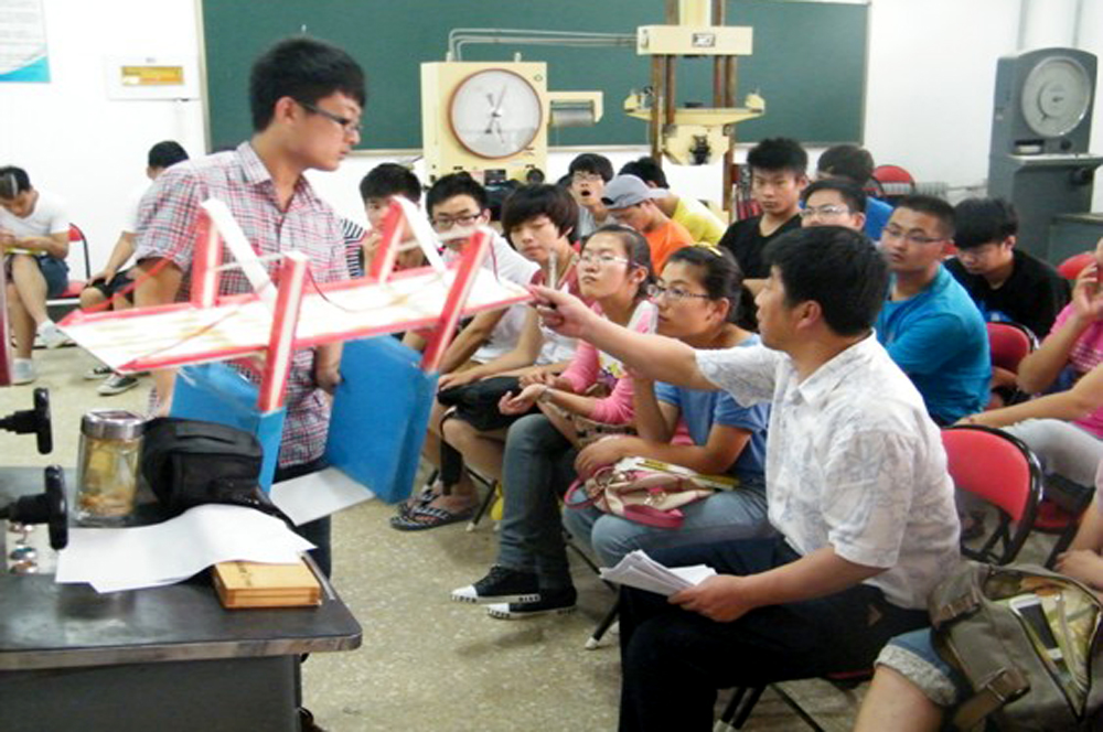 為推進《土木工程力學》課程改革,土木工程系于523開展力學模型制作成果展示活動。王亞飛老師進行了現場指導,道橋2012級學生參與了本次活動。