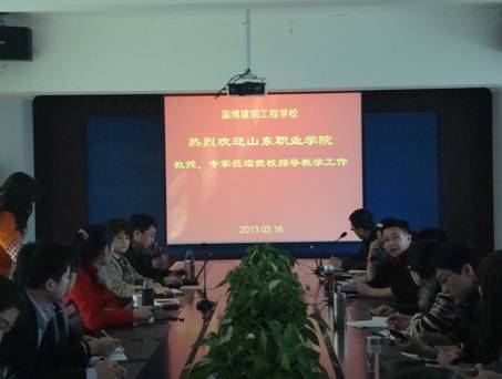 2013年3月16日星期六,土木工程系郭兆軍、步文萍、張風琴、王靜到淄博建筑工程學校,應邀參加建筑工程施工專業“行動導向教學”教學設計研討會。