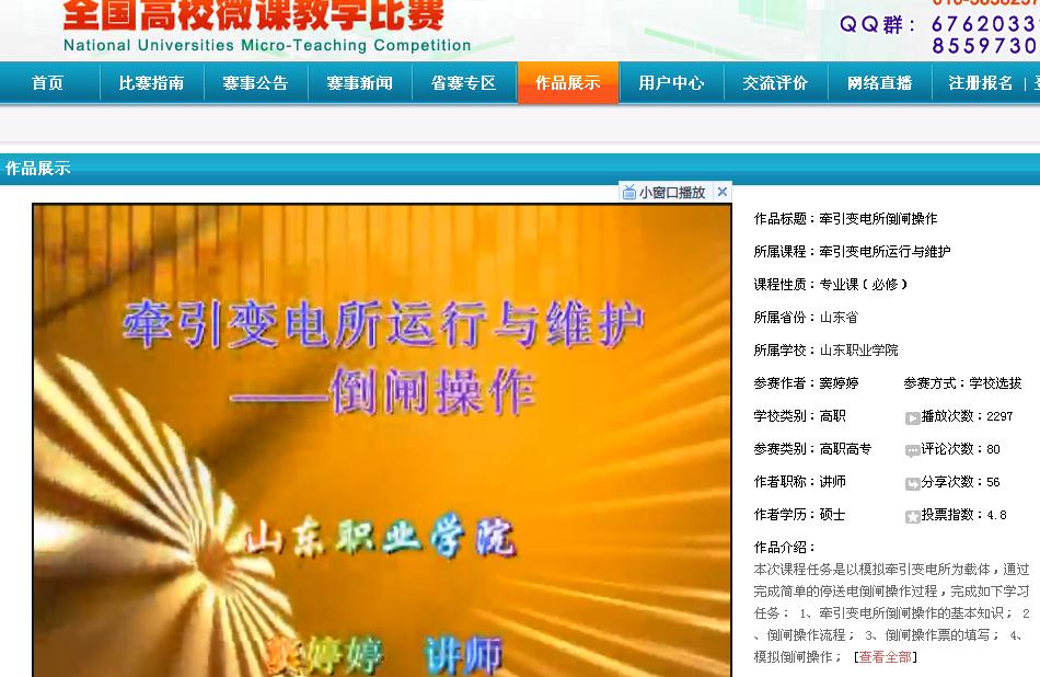 為了推進高校教師專業發展和教學能力的提升,教育部全國高校教師網絡培訓中心舉辦首屆全國高校微課教學比賽。學院鼓勵教師積極參與,電氣化鐵道項目組劉凌、竇婷婷、焦麗娜、孫蕾4位老師認真準備,分別以《無時限電流速斷保護》、《牽引變電所倒閘操作》、《設備電氣的倒閘操作》、《他勵直流電動機啟動》課題參加學校初賽。學院各系部共有36門課程參賽,最終27門課程通過學校初賽,推薦進入省級復賽。電氣化鐵道項目組4位老師的參賽課程全部進入了復賽。