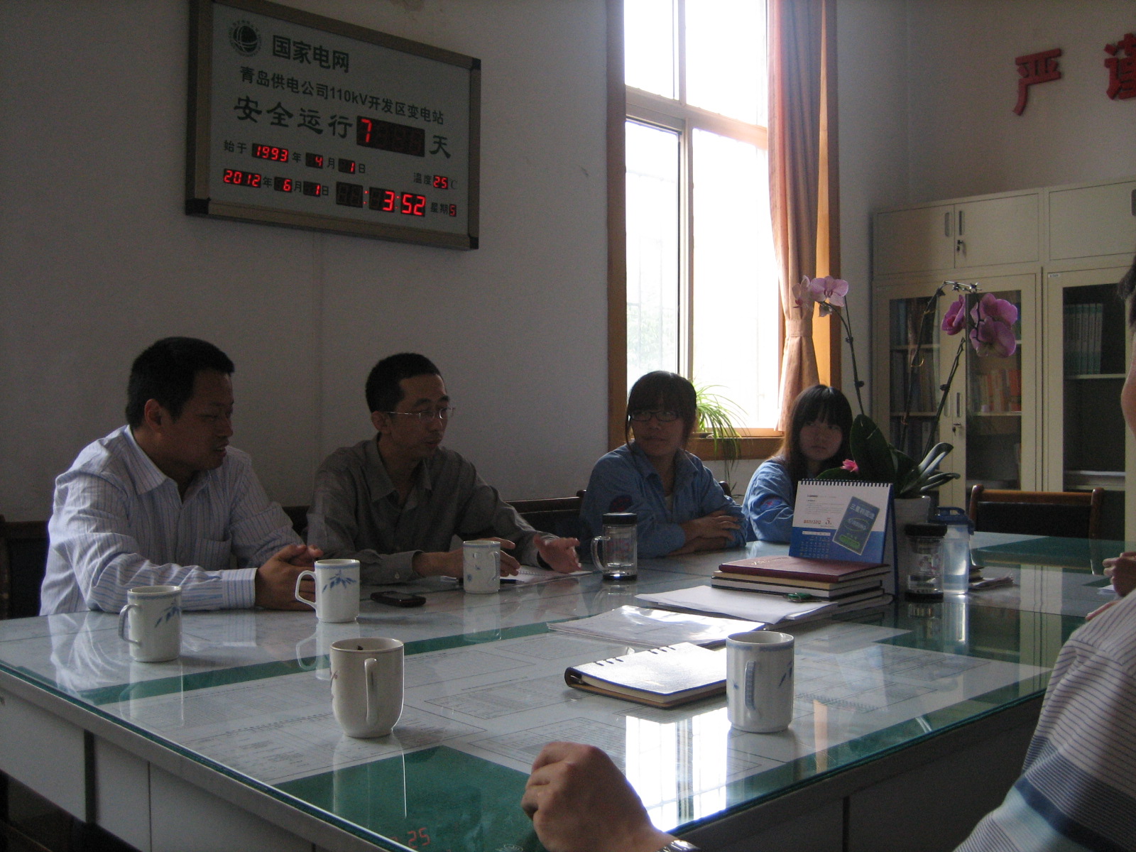 6月1日,項目組來到益和電氣集團股份有限公司。2011年11月供用電技術有20名學生到益和電氣運行有限公司實習,經過培訓和實習,留下的9名同學均已經通過了考核定崗。項目組參觀了青島開發區110KV變電站,與集團公司人力資源進行校外實習基地掛牌的洽談。