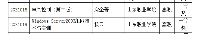 2011年10月31日,山東省教育廳網站“第二屆山東省高等學校優秀教材評審結果公示”中顯示,在山東省教育廳組織的“2010年第二屆山東省高等學校優秀教材評選”活動中,由山東職業學院電氣工程系房金菁教授主編的《電氣控制》(第二版)教材獲評選活動高職組一等獎。