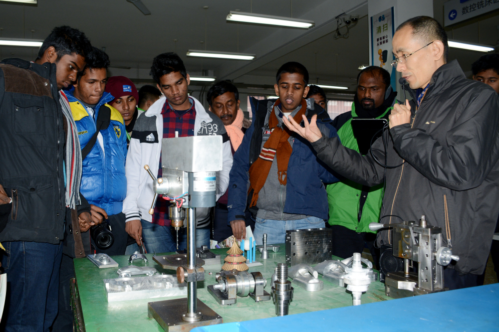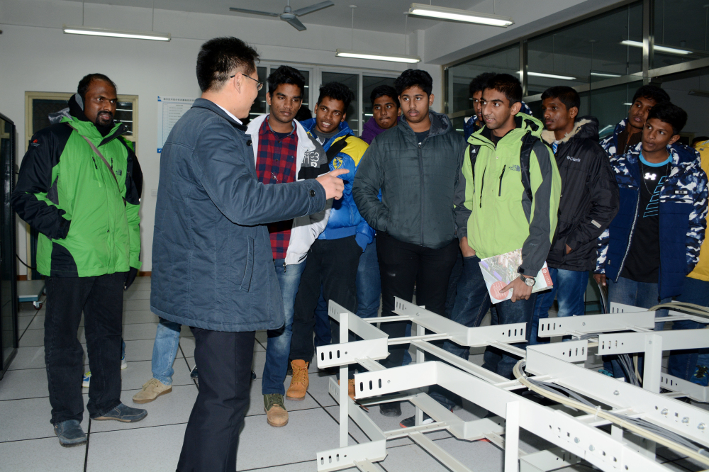 為迎接國際友人訪問,學院培訓了一支英語學生講解員和志愿者,用英語介紹校園環境,各實驗實訓場所“雙語”教師介紹設備及功能。在數字化數控加工車間、機械制造工藝實訓車間,現代通信技術綜合實訓基地、SMT實訓室、鐵路施工技術實訓場,學生們認真學習、詳細了解各實訓設施設備性能及工作原理,贊嘆我院的“教學做”一體化課堂環境。在機電系舉辦的創新產品博覽會上,斯里蘭卡學生們對我院學生設計制作的機器人、激光雕刻等各種創新作品,興趣濃厚,交流討論。在軌道交通綜合實訓中心,學生們被數臺不同類型的城軌實訓車吸引,紛紛駐足,拍照留念。