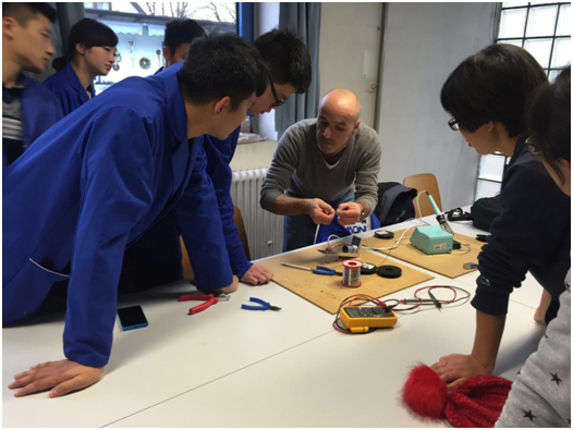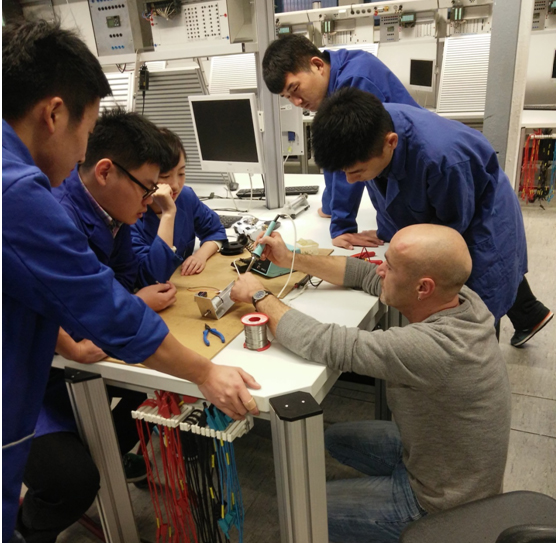 交流師生還觀摩了Andreas Fellner老師PLC課程的授課,我院交流學生與德國學生組成一個學習小組,共同完成Andy老師的課程任務。盡管課程是短短的兩個小時,但老師和學生充分體驗了Andreas Fellner老師嚴謹認真的教學態度、詼諧幽默的授課方式,兩位老師還和Andy老師探討了德國先進的職業教育教學方法與組織模式等。