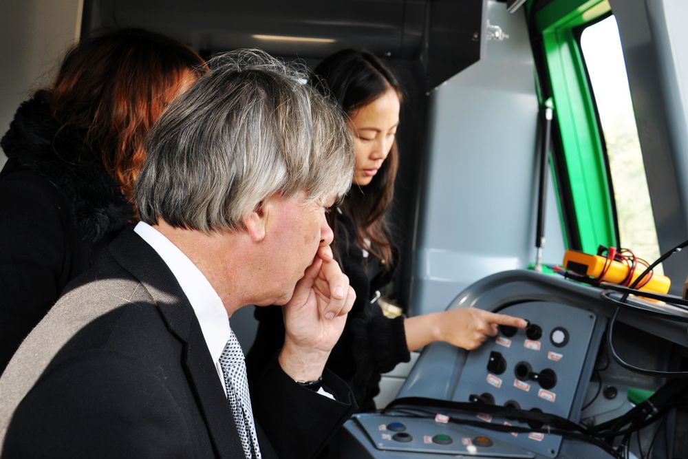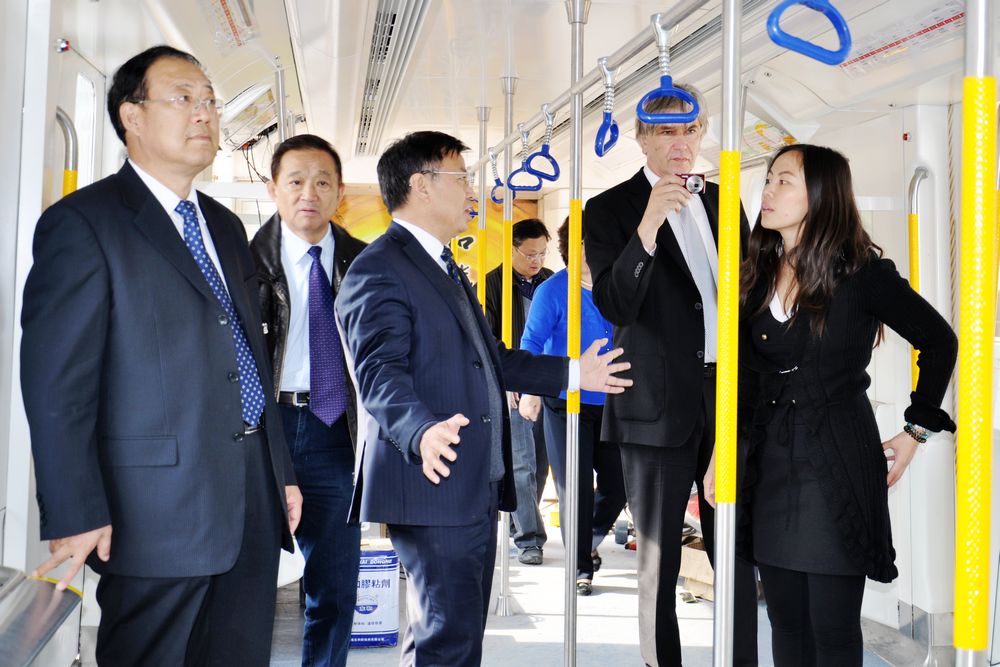 訪問期間,福格臧主席一行在學院領導的陪同下參觀了軌道交通系機車車輛教學實訓演練場、機械工程系數控加工實訓基地、機電裝備系機電裝備技術實訓基地、電氣工程系SMT生產線等。在“山職號”城軌車輛教學實訓車參觀過程中,福格臧先生還饒有興趣的登上“山職號”,并按響了象征著中德達成合作意向的開車汽笛。