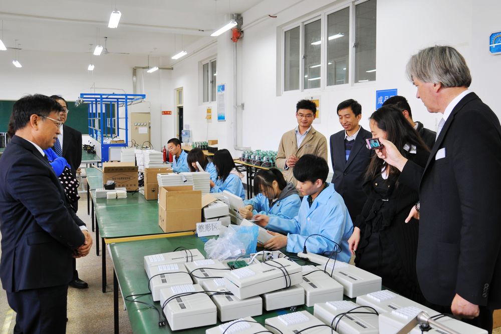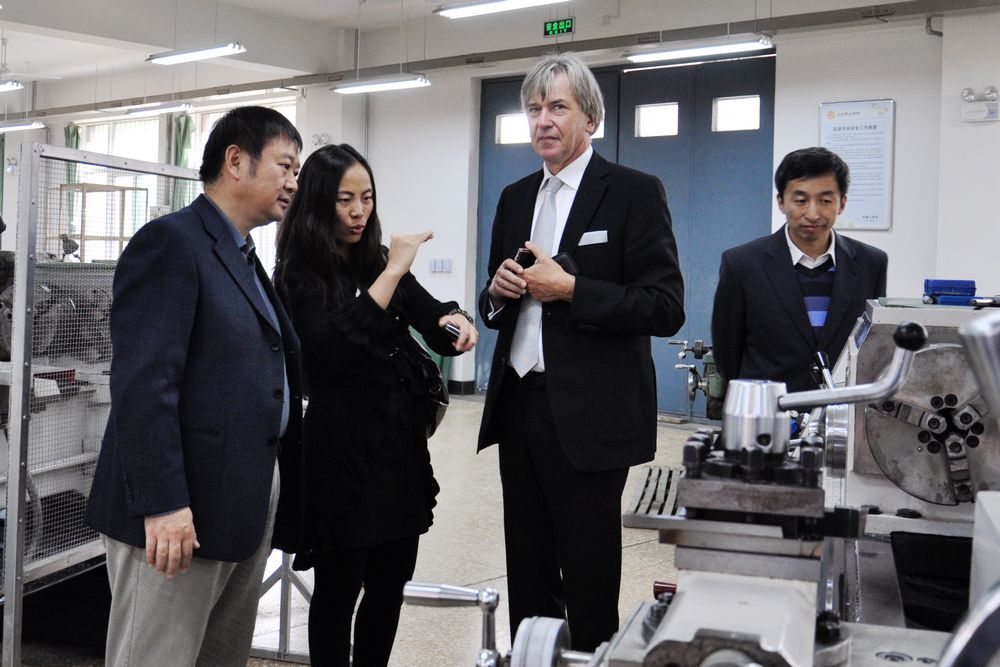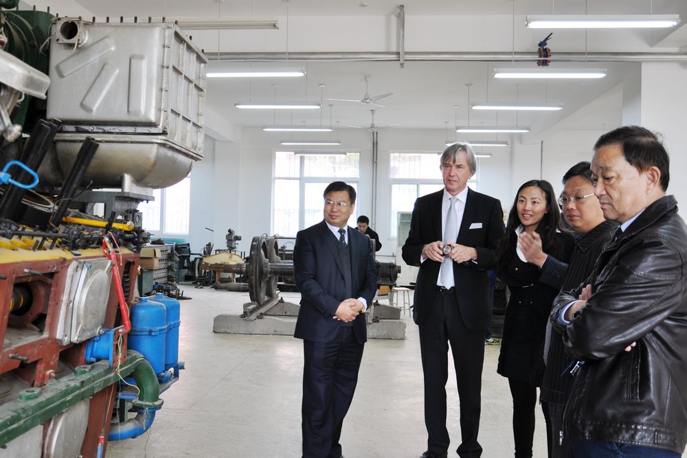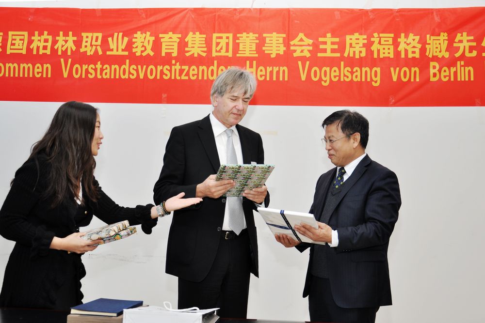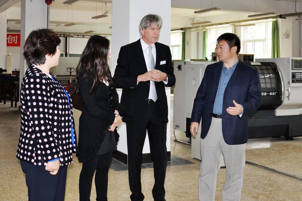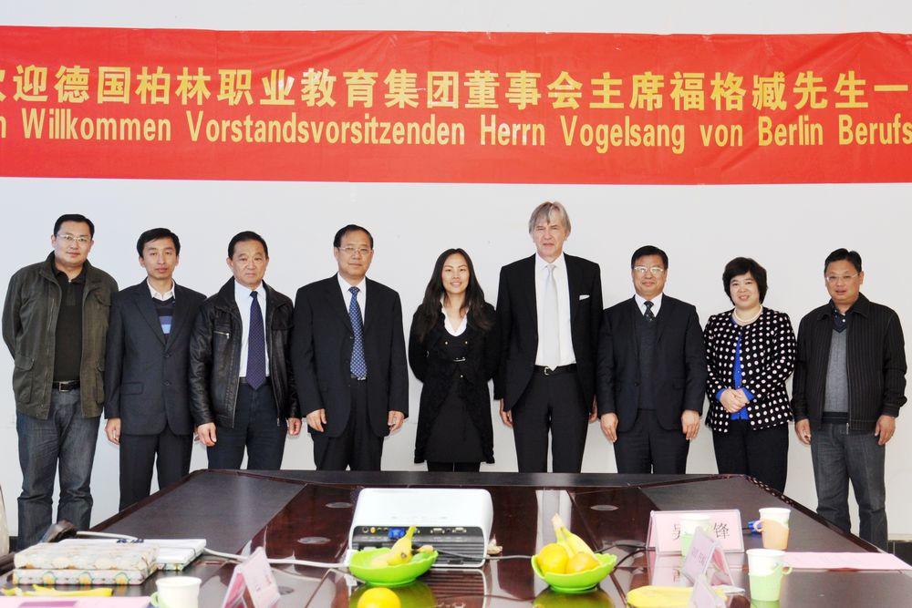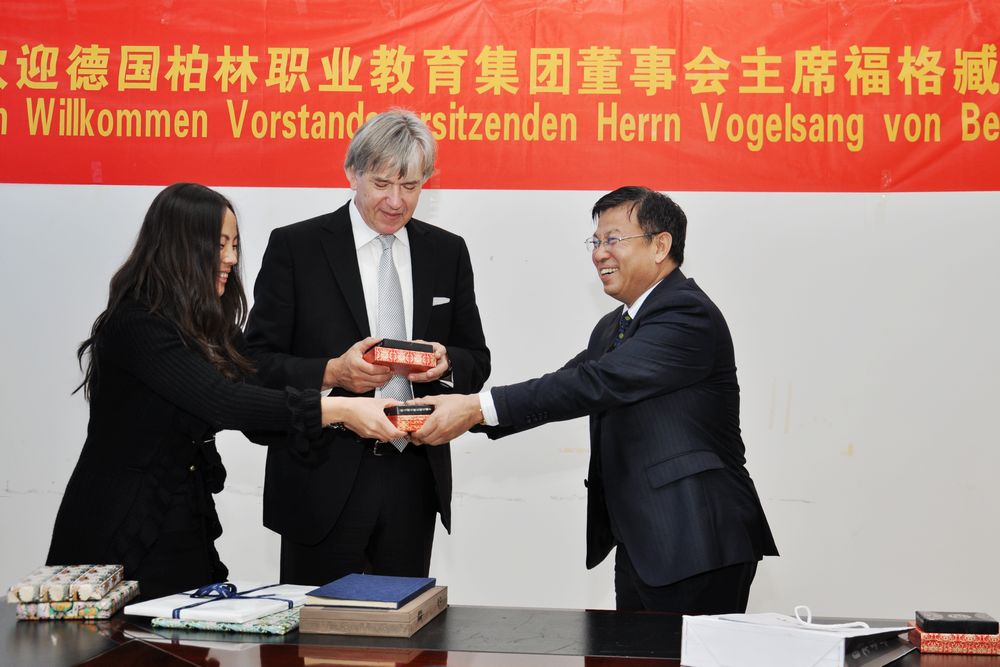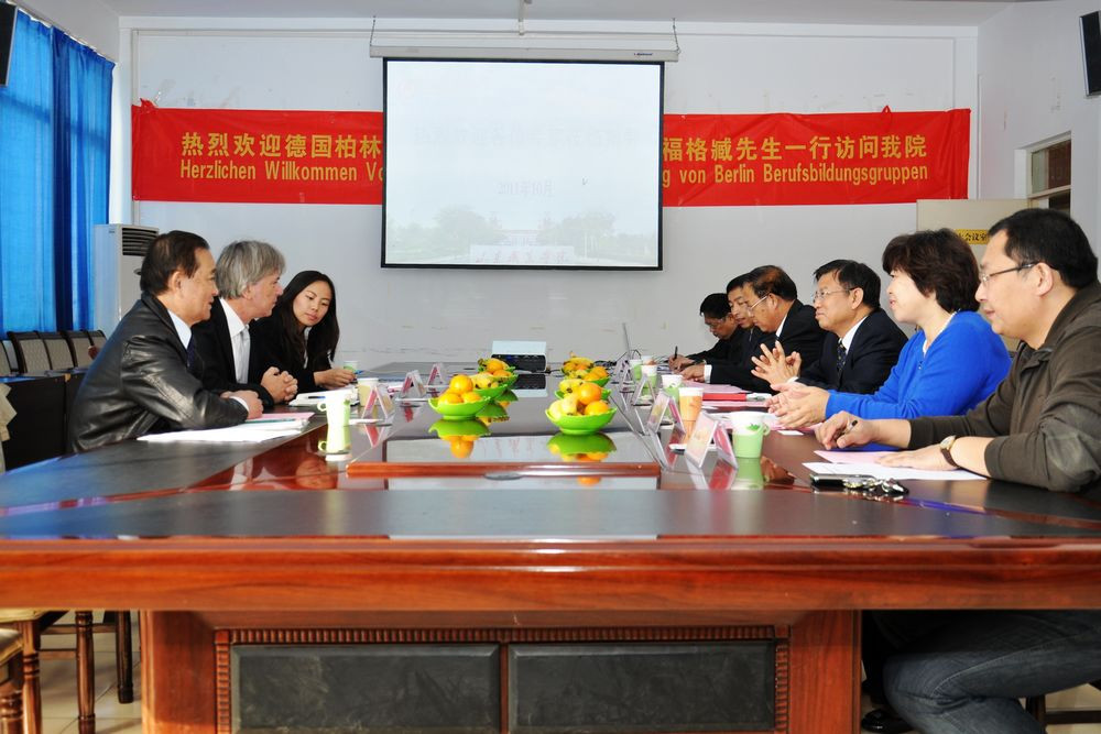Vogelsang(福格臧)主席對學院的熱情接待表示感謝,并介紹了德國柏林職業教育集團情況和集團在中國開展的合作項目。他在聽取了學院介紹以及實地參觀了學院的教學實訓基地和實訓實驗室后表示,山東職業學院的辦學實力讓他對今后的交流與合作充滿了信心和希望。福格臧說,德國職業教育推行的是雙元制教育,即在工廠企業和國家的職業學校進行教學,這種教育模式又以企業培訓為主,將企業中的實踐和在職業學校中的理論教學密切結合。德國柏林職業教育集團與山東職業學院開展國際交流與合作,希望能在專家授課、技術研發、師資培訓、學生互訪學習、技能認證等方面開展一系列切實可行、行之有效的合作項目,推動德中雙方高等職業教育的育人新局面,共贏新渠道。
