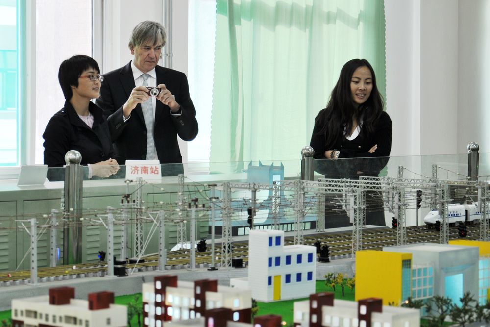 鄧洪基向來訪客人介紹了學院的發展情況以及國際合作辦學方面取得的成績。他說,2006年至2010年四年間,學院與德國蘭茨胡特高等技術學院多次互派師生訪問,加強交流與學習;2009年,學院與韓國湖南大學相繼開展了機械制造與自動化、電子信息工程技術、動漫設計與制作3個專業的合作教育招生。今年10月,學院在原有機車車輛教學實訓演練場的基礎上又成功引進“山職號”城軌車輛教學實訓車,目的在于提升教育教學硬實力的同時加強培育一大批適應國際國內行業發展形勢的素質高、理論強、技能硬的優秀人才。鄧洪基希望中德雙方能夠加強高等職業教育領域國際間的交流與合作,著力提升合作教育教學水平,提高高等職業教育育人質量。