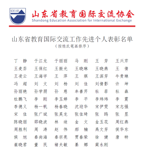 “山東省教育國際交流工作先進個人”的決定,