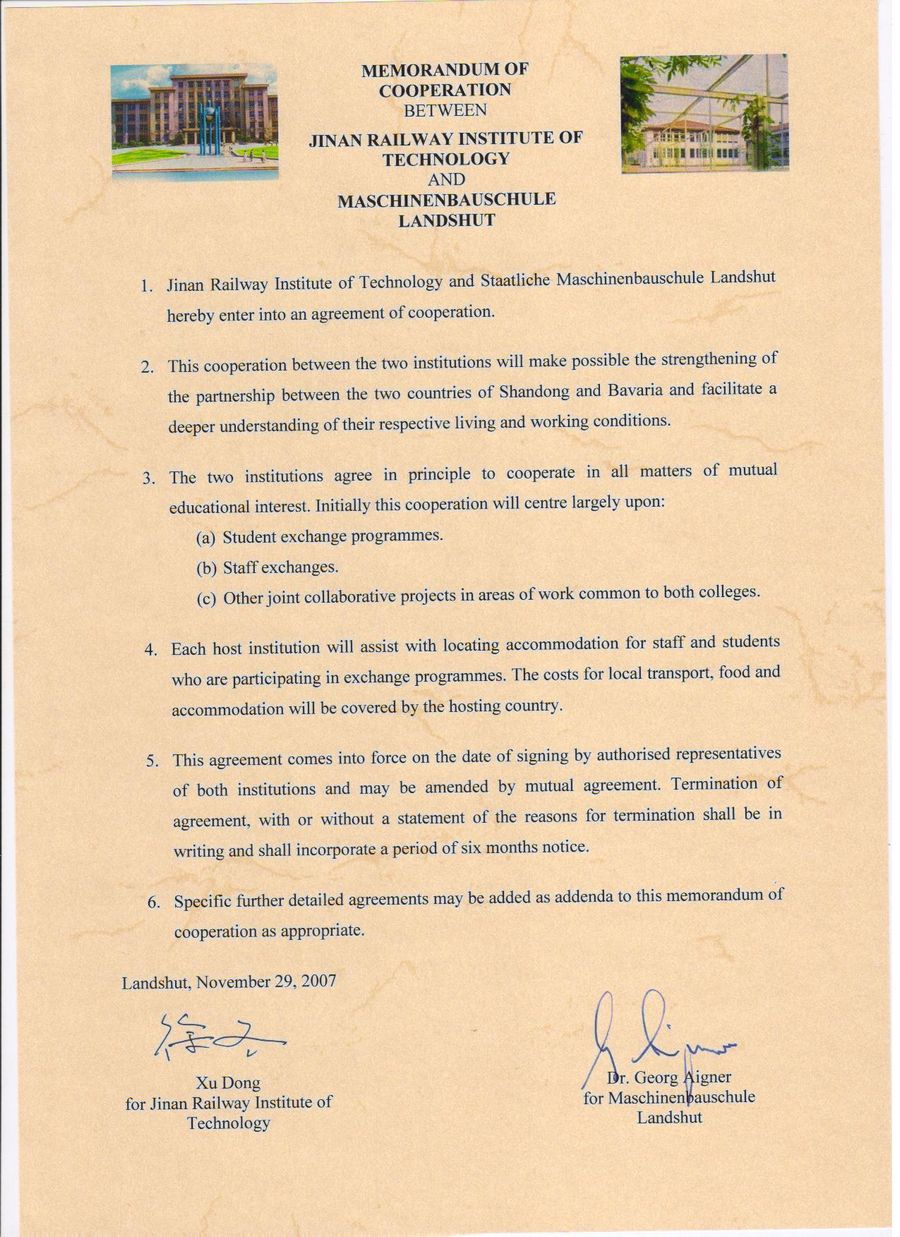 山東職業學院與德國蘭茨胡特高等技術學院交流合作協議書