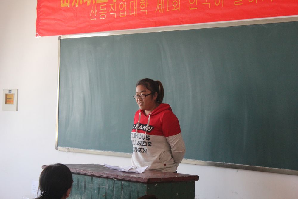韓語演講比賽由國際交流中心李彥、莊婷、郭經偉老師,以及有韓國留學經歷的李林林、榮映菡老師擔任評委。中韓班大二學生8名、大三學生1名,共9名選手參加了比賽。雖然決大部分選手是大二學生,僅學習了不到兩個半學期的韓語,但是學生們積極準備,展示了自己的韓語水平,展現了良好的精神面貌,讓我們看出了他們的努力,看到了中韓班學子的風采。