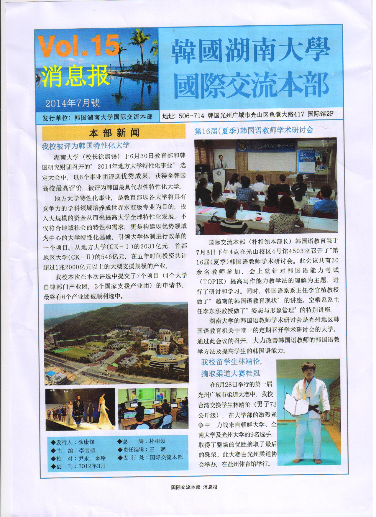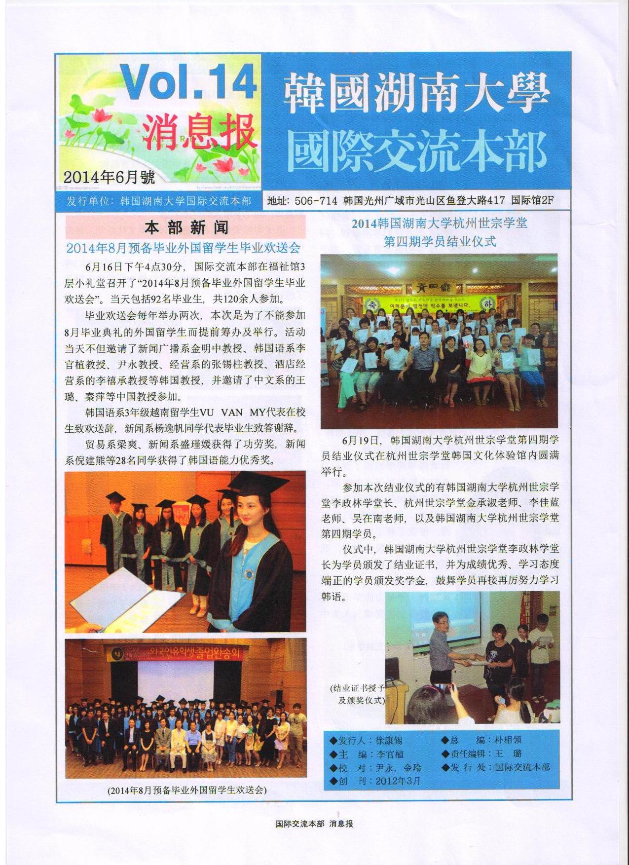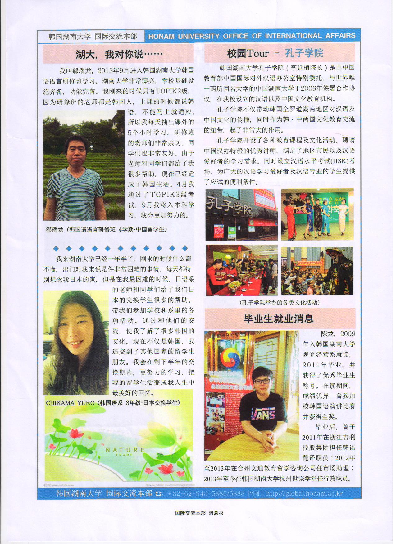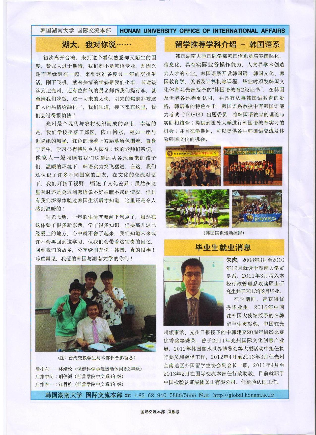 韓國湖南大學國際交流消息報
