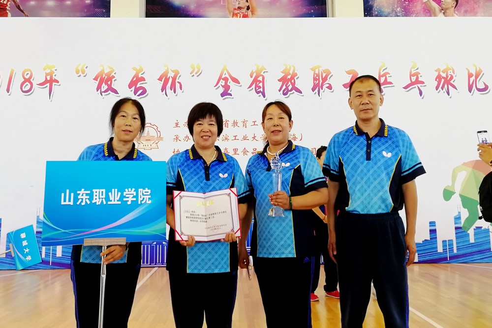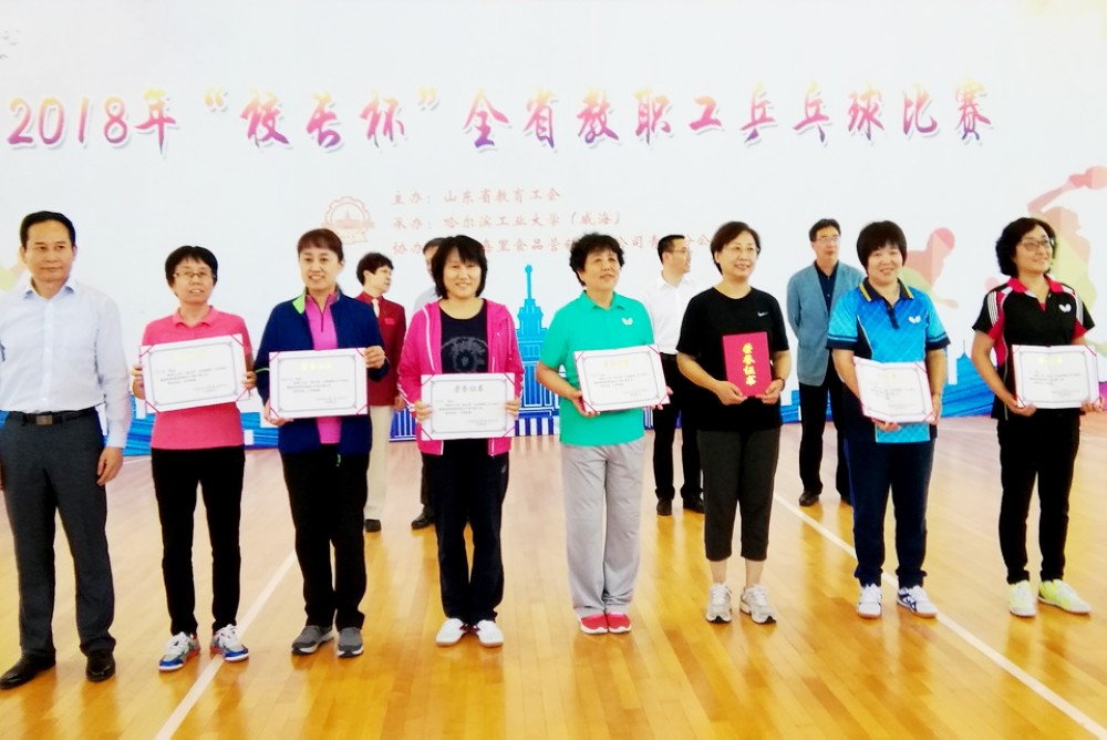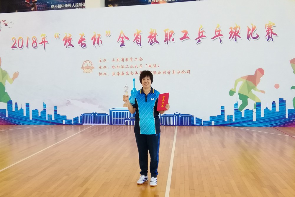 5月29至6月2日,“校長杯”山東省教職工乒乓球比賽在哈爾濱工業大學(威海)舉行,來自全省各高校、各地市的79支乒乓隊、568名乒乓球運動員參加比賽。我院由副院長祝瑞花、工會婦委會副主任國翠香、基礎部(思政部)教師侯成飛、財務處職工李希榮4名隊員組隊參賽。經過激烈角逐,祝瑞花獲校領導組女子單打第三名,學院獲優秀組織獎。