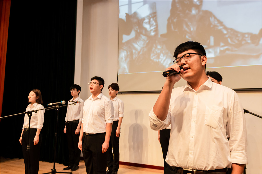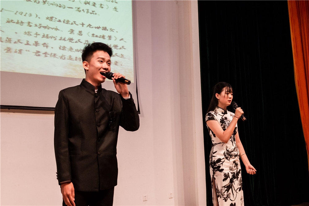 朗誦會在《團結在共青團旗幟下》拉開帷幕,朗誦者們飽含熱情,慷慨激昂,精彩的演繹打動了在場的每一位觀眾,讓同學們感受到了身為一名共青團員的使命和光榮。作品《“五四”之火》以五四運動的爆發為背景,以詩歌的形式再現了那段波瀾壯闊的歷史,深刻詮釋了民主、科學、進步、愛國的五四精神。《父親的家書——寫給李萬君的信》以父子對話的形式講述了中車公司高級技師、“工人院士”“高鐵焊接大師”李萬君的故事,反映了他從普通工人成長為大國工匠的不平凡的歷程。經典古詩朗誦《春江花月夜》《朱子語類》帶領觀眾們穿越時空感受古典之美,吟誦協會的同學們帶來的原汁原味的古調吟誦《江南》《短歌行》,在展現傳統吟誦魅力的同時,也讓同學們了解了更多的古人讀書之法。