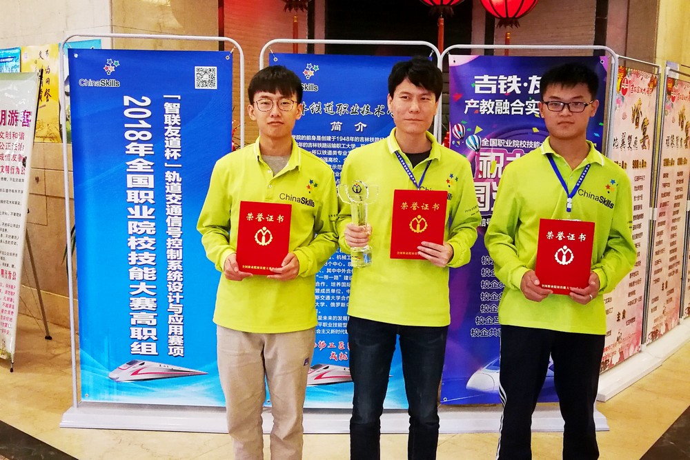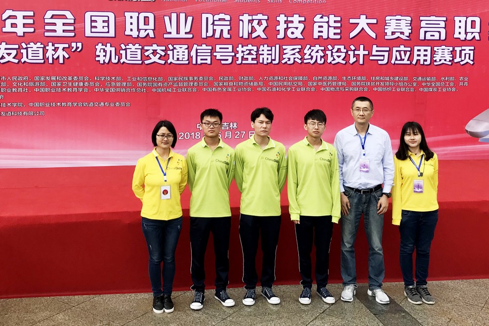 5月27日,由教育部主辦的2018年全國職業院校技能大賽高職組“軌道交通信號控制系統設計與應用”賽項舉行。本次比賽共有來自全國24個省、市、自治區71所院校的213名選手參加。經過激烈競爭,由我院鐵道信號與信息工程系楊文虎主任領隊、肖穎、鮮敏老師指導、徐曉輝、黃銀、李功行等三名學生組成的團隊獲得大賽一等獎優異成績。來自俄羅斯、韓國、肯尼亞、伊朗四個國家60名學生到現場觀摩比賽。