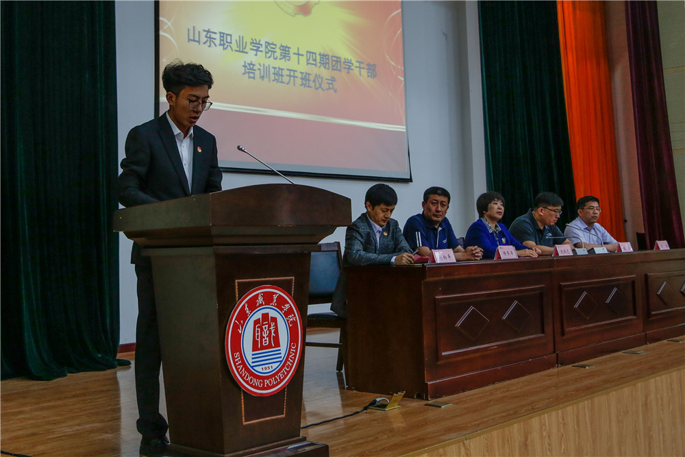 開班儀式上,團委書記兼學生工作處處長王偉為同學們介紹了培訓班的基本情況以及學習培訓的具體要求。院學生會主席高碩同學代表全體學員莊嚴承諾嚴格自律、加強學習、腳踏實地、積極工作,做新時期大學生的楷模。