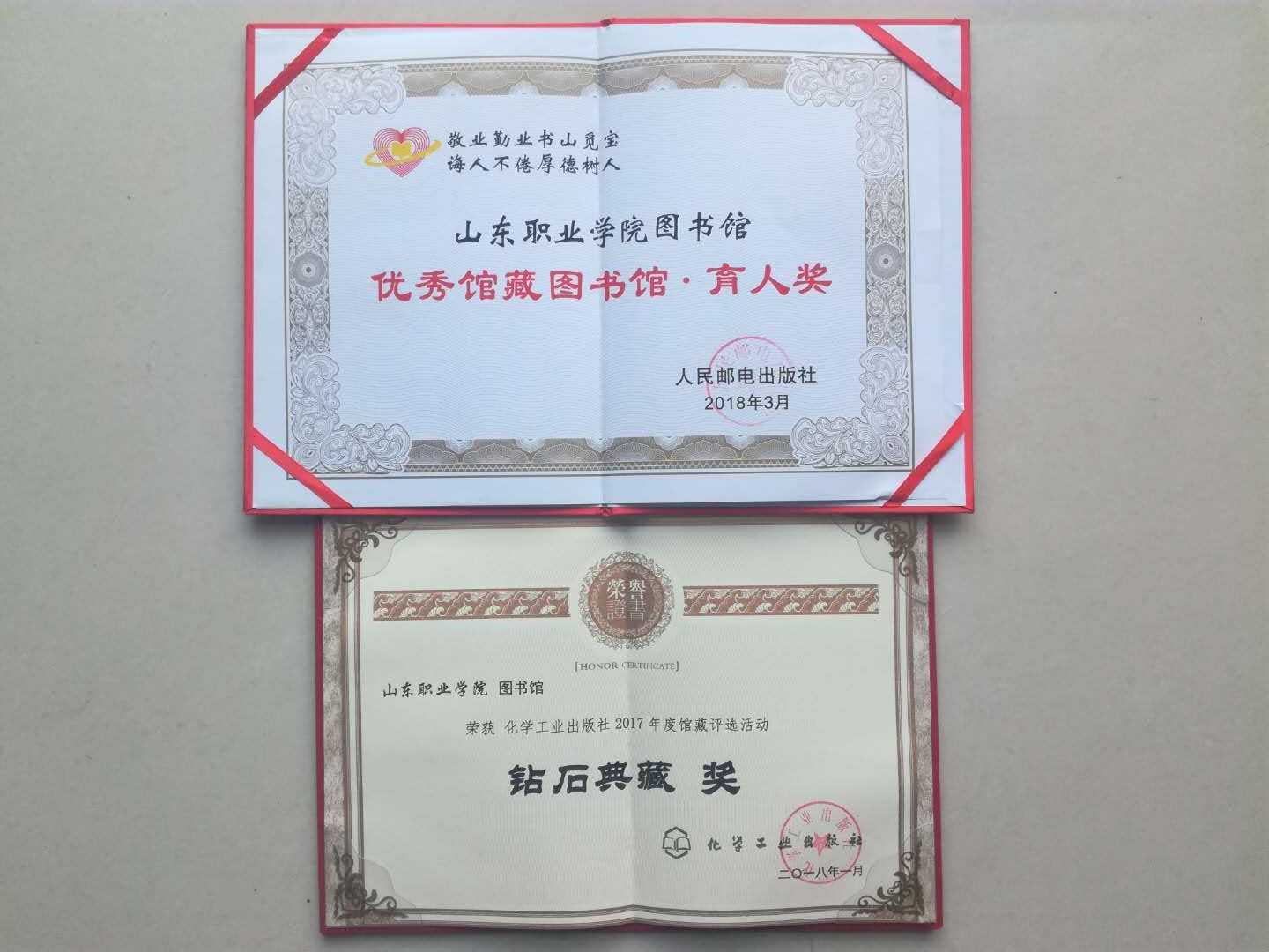 我院圖書館榮獲人民郵電出版社“育人獎”、化工出版社“鉆石典藏獎”