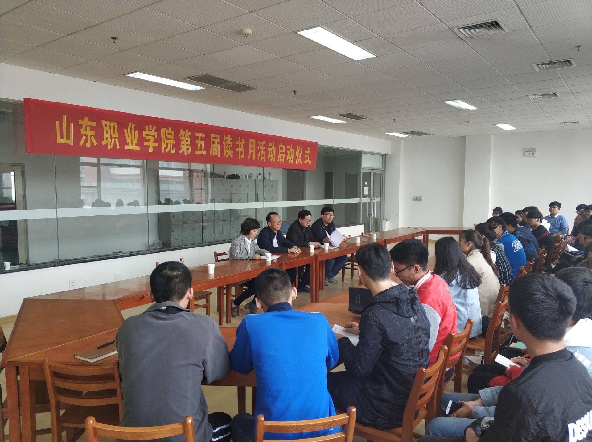 4月23日,在第23個“世界讀書日”來臨之際,以“悅動青春,與書相伴”為主題的山東職業學院第五屆讀書月活動啟動儀式在圖書館三樓順利舉行。學院工會主席王功喜、團委書記兼學生工作處處長王偉、圖書館館長朱超、副館長伏立霞出席活動。
