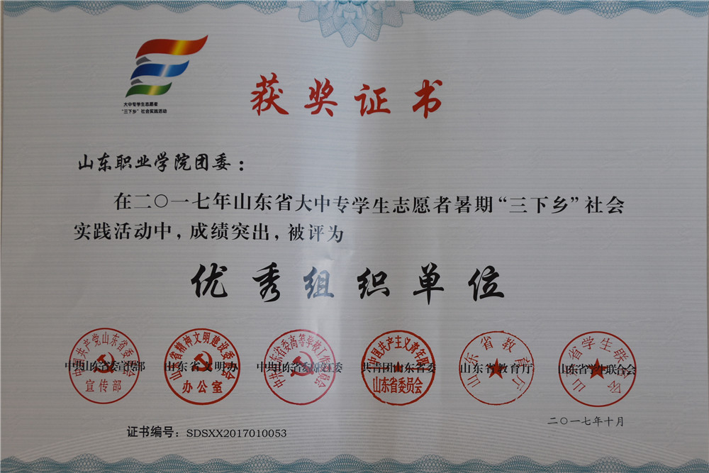 近日,共青團山東省委下發通知,對2017年度全省共青團工作、大中專學生暑期“三下鄉”社會實踐先進集體和個人進行表彰,我院6支團隊、8名教師、20名同學被授予榮譽稱號,學院團委被評為2017年度“山東省先進團委”,至此我院已連續四年獲此殊榮。